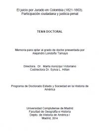 A partir del caso colombiano, pretende contribuir de modo novedoso a los estudios historiográficos sobre la institución del Jurado en el mundo hispánico, campo en el que apenas existen trabajos al respecto. Defiende la incidencia del Jurado en la transformación de la justicia penal y en los procesos de democratización social, constatándose este planteamiento a partir del análisis de la cultura jurídico-política –tanto en su dimensión discursiva como práctica- desarrollada en torno a esta institución durante el periodo de 1821 a 1863.