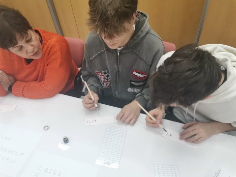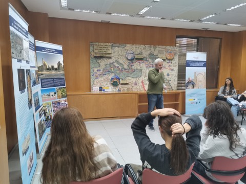 Este año, los alumnos comenzaron la jornada con una bienvenida y presentación del CSIC, y más especificamente, del CCHS, con su correspondiente explicación de la estructura y organización de los seis institutos de investigación que forman el centro. A continuación, comenzó la 1ª parte de la visita consistente en dos actividades: la primera fué la charla: Acompaña al primer embajador del Reino de Castilla en su viaje a Constantinopla y Samarkanda. La expedición de Ruy González de Clavijo a la corte del sultán Tamerlán (1403-1406), por Raúl Estangüi, Carmen García Bueno y Alfredo Calahorra. Esta charla se apoyó en un gran mapa y varios murales representando el viaje de Ruy Clavijo. Estuvo muy interesante ya que los ponenetes se centraron en los viajes y las expediciones de aquella época y consiguieron la atención de los alumnos convirtiendoles en "exploradores" por un rato. Despues del viaje de Calvijo, asistieron al taller Escrituras en la Península ibérica medieval, por Elvira Martín Contreras (ILC-CSIC) e Inés Calderón Medina (IH-CSIC). Tuvieron la ocasión de disfrutar de la escritura medieval escribiendo cada uno sus nombres con plumilla y tinta en papel especiales simulando a aquella época.