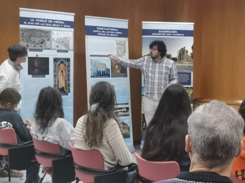 Este IES palentino desarrolla un programa de Investigación de Excelencia en Humanidades y Ciencias Sociales y valora muy positivamente la oportunidad de que sus alumnos conozcan a investigadores de primera mano, y cuáles son su objetos y métodos de trabajo. En esta ocasión les han acompañado el jefe de estudios David Ruíz, y la directora Gloria Fernández Sánchez-Escribano, Coordinadora Bachillerato de Investigación/Excelencia.