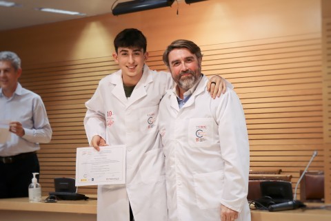 La ceremonia tuvo lugar en el Centro de Ciencias Humanas y Sociales del CSIC el pasado 6 de octubre, y es el acto final de la edición 2022-2023 de 'Científic@s en prácticas'. Se trata de un proyecto de divulgación por el que un total de 96 estudiantes de 3º de Educación Secundaria Obligatoria (ESO) y 1º del Programa de Diversificación Curricular (PDC) se han convertido por una semana en científicas y científicos, conviviendo y colaborando en los trabajos diarios de 48 grupos de investigación, gracias al programa ‘Científic@s en prácticas’, promovido por tercer curso consecutivo por el Consejo Superior de Investigaciones Científicas (CSIC) y la Asociación Española para el Avance de la Ciencia (AEAC).