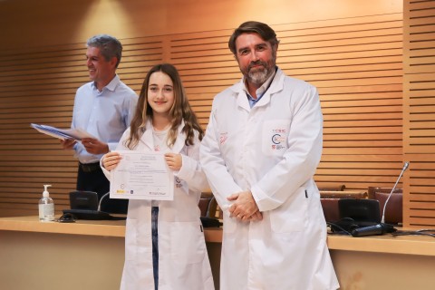 Junto a los alumnos también acudieron profesoras y profesores de los institutos de Enseñanza Secundaria, componentes de los grupos de investigación, representantes de las instituciones colaboradoras, y familiares del alumnado. Jesús Rey ha señalado que “fue muy emotivo compartir el acto con madres y padres, y también pudimos ver algún que otro abuela y abuelo, y hermano y hermana menor en cuyos ojos se podía atisbar el deseo de participar en Científic@s en prácticas en los próximos años. En el fondo, este tipo de actos nos permiten celebrar el desarrollo del programa, pero también suponen un grano de arena más en el acercamiento de la sociedad a las instituciones científicas.”