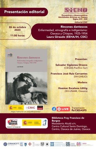 Próximas presentaciones en México del libro "Rincones dantescos. Enfermedad, etnografía e indigenismo: Oaxaca y Chiapas, 1925-1954", de Laura Giraudo